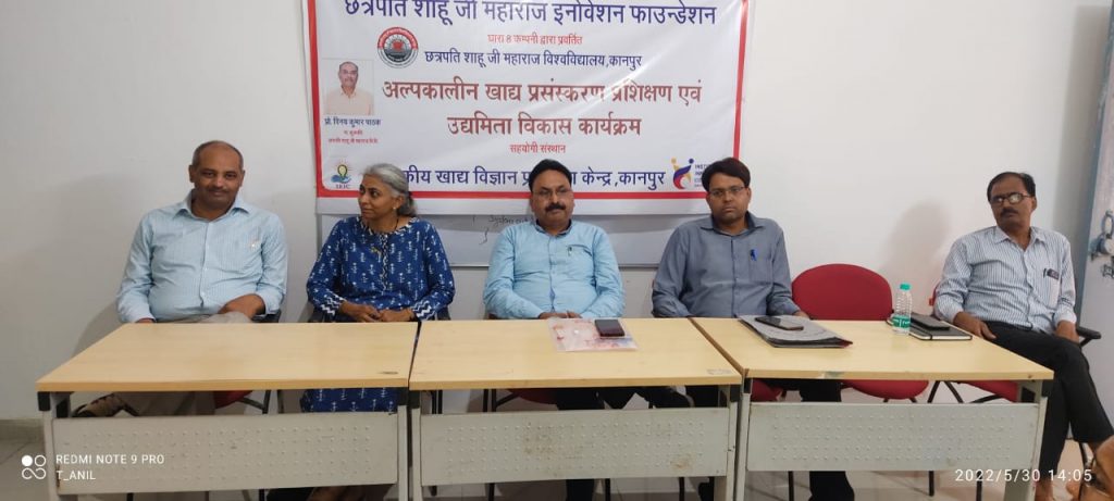 दिनांक 30 मई 2022 को छत्रपति शाहू जी महाराज इनोवेषन फाउंडेशन एवं राजकीय खाद्य विज्ञान प्रशिक्षण केन्द्र के संयुक्त तत्वाधन में अल्पकालीन खाद्य प्रसंस्करण प्रशिक्षण एवं उद्यमिता विकास कार्यक्रम का