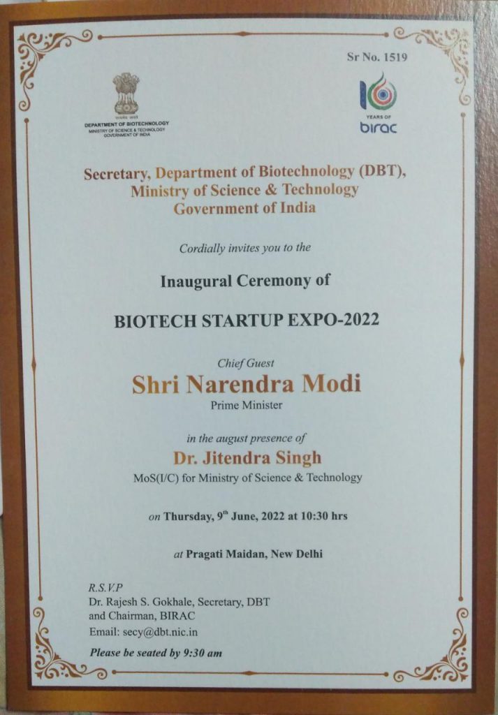 बायोटेक र्स्टाटअप एक्सपो-2022 में प्रतिभाग दिनांक 8 एवं 9 जून 2022 को छत्रपति शाहू जी महाराज इनोवेशन फाउंडेशन द्वारा मंत्रालय सांइस एण्ड टेक्नोलॉजी, बायो टेक्नोलॉजी विभाग द्वारा आयोजित बायोटेक र्स्टाटअप