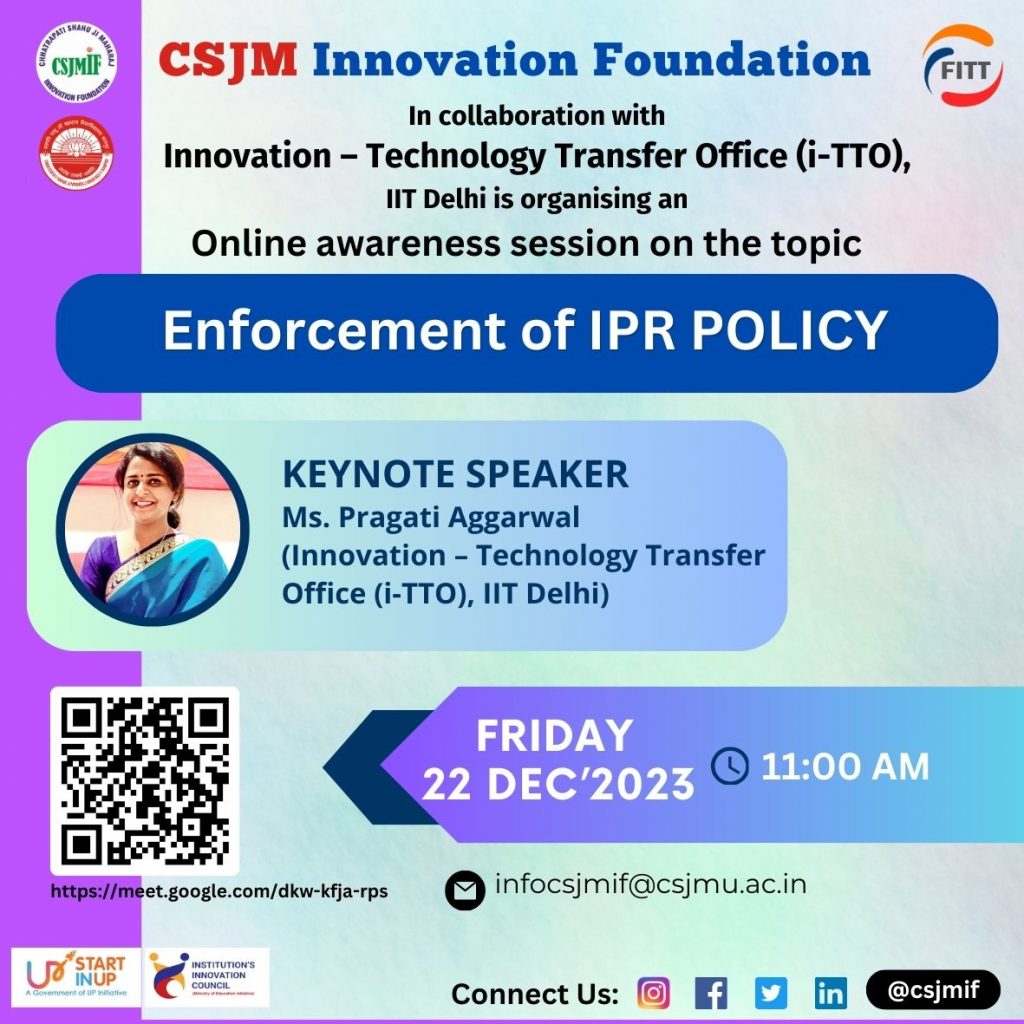 दिनांक 06 जनवरी 2024 को छत्रपति शाहू जी महाराज इनोवेशन फॉउण्डेशन एवं आई टेक ग्रुप के संयुक्त तत्वाधान में कार्यक्रम का आयोजन गया, कार्यक्रम का मुख्या उद्देश्य नीतियों के निर्माण […]