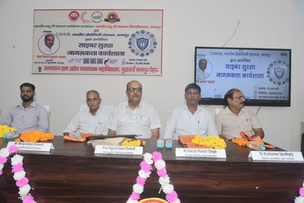 15 September’2025 – Cyber Security Vocational Course Awareness Workshop was organized at Ram Swaroop Gram Udyog P.G. College, Pukhrayan, Kanpur Dehat — a collaborative initiative by CSJM University, Kanpur and C3iHub, IIT Kanpur & CSJM Innovation Foundation. 🧠 Key Highlights: 📢 Shri Rajesh Kumar Dwivedi, Director, College Development Council, CSJMU, emphasized: “Cyber Security is a crucial need of today’s digital era. As the nation advances digitally, safeguarding our digital space becomes equally important. Educating the youth is the most sustainable solution.”